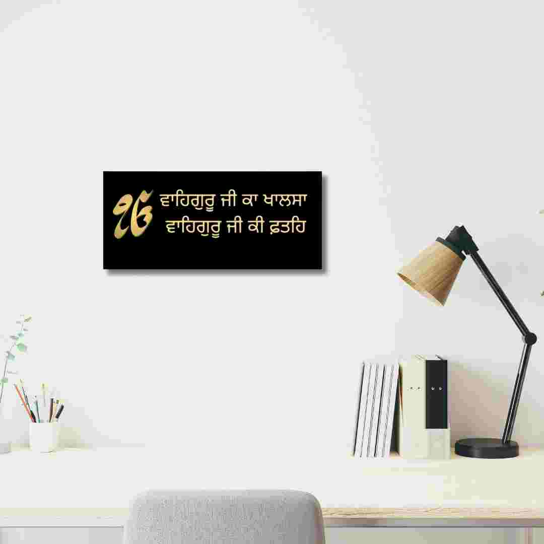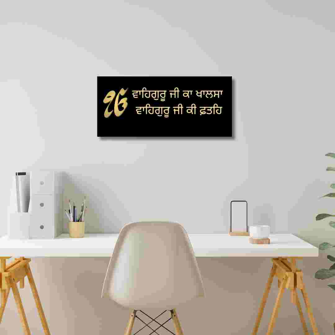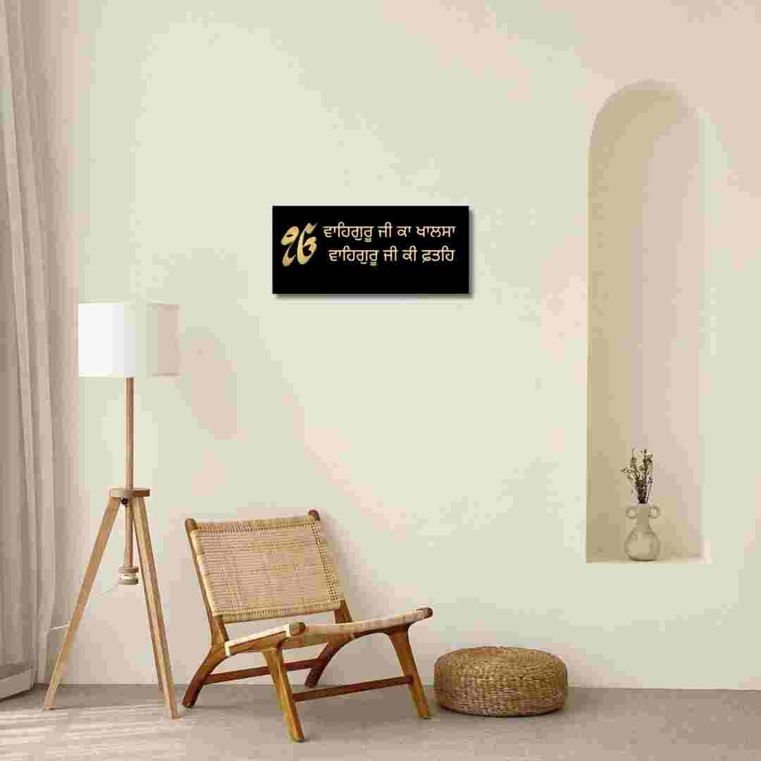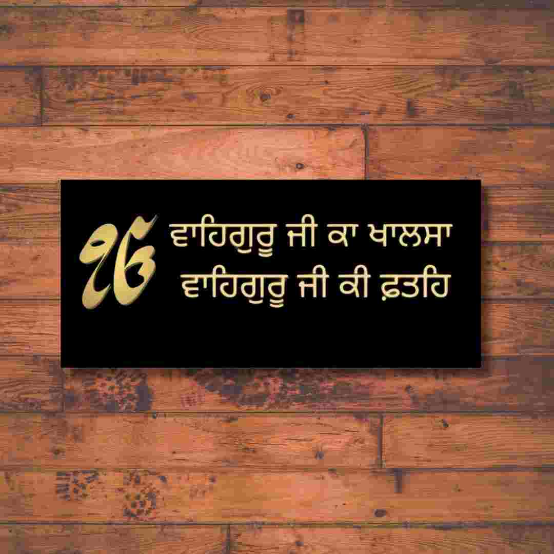 Waheguru Ji Ka Khalsa, Punjabi Font |Black & Gold